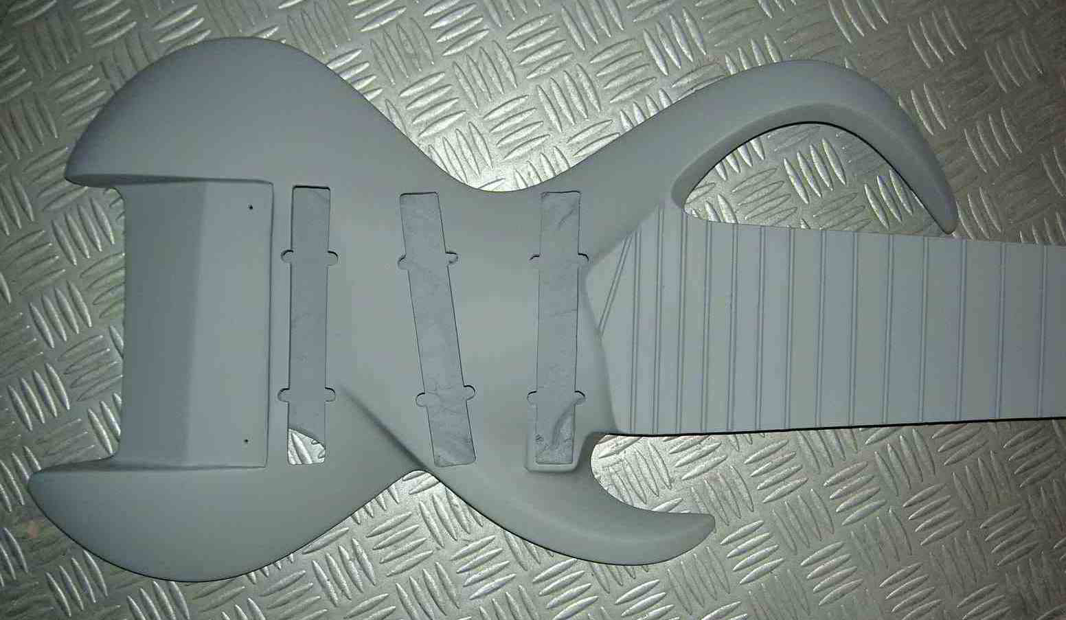 Look closely at the neck, and you'll see that the frets have not been revealed (they're still covered with lacquer).