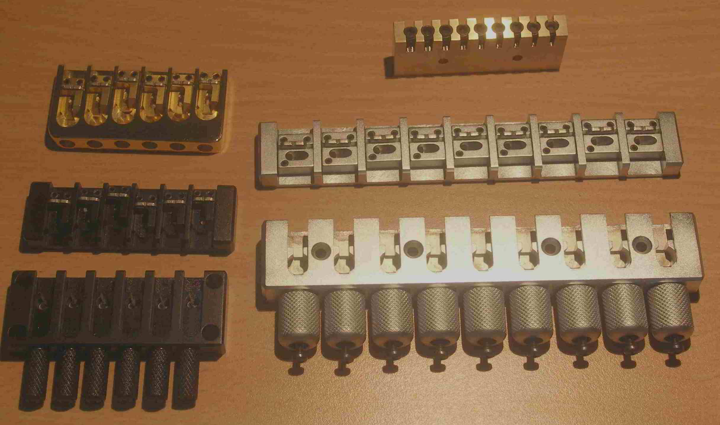 The light-weight bridge sits right on top, while the heavier tuners are out of the way at the edge. |