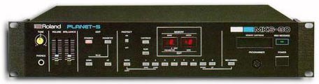 For sale: Roland MKS-30 Planet-S 6-voice analog synthsn:??????, built 1983?The MKS-30 is rack module version of the JX-3P with some enhancements, in essence a velocity-sensitive JX3P with an increased memory. An earlier version, the MKS3, was perhaps the world's first MIDI module, but never made it into production. It is an analog synth with DCO's (digitally controlled oscillators), 6 voice polyphony, it responds to velocity, and has 64 internal & 64 cartridge memory patches. This unit has one voice that "sticks" on, apparently in the release portion of the sound. I think it can be fixed, with the included service/schematic manual. Includes PG-200 programmer surface and M-16C memory cartridge. Price: $950 for both |